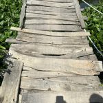 - Cầu cũ: dài 25m, rộng 1.5m, làm bằng tấm gỗ tạm bợ.
