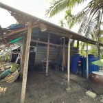 Căn nhà anh chị đang ở có diện tích 40m2 được che bởi cây lá đơn sơ xuống cấp nghiêm trọng. Khu Anh Chị ở cũng khá hẻo lánh xa khu dân cư. Quan sát căn nhà chúng ta có thể thấy hoàn cảnh kinh tế khó khăn, nơi ở không được đảm bảo khi có mưa bão đến.